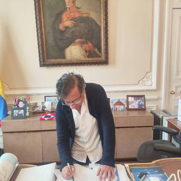 El presidente de Colombia, Gustavo Petro, firma un decreto.( )