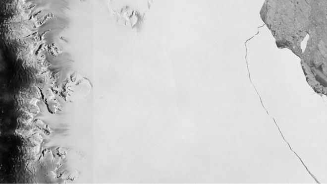 La grieta que finalmente dio nacimiento al témpano comenzó a agrandarse en 2014.