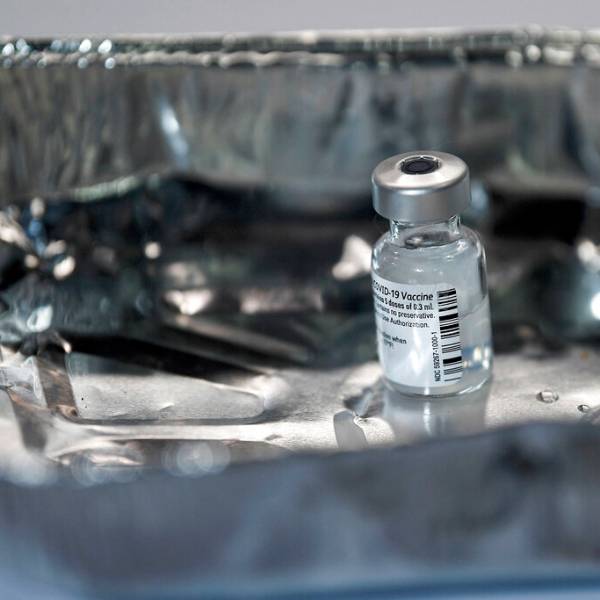 Un frasco con la vacuna de Pfizer-BioNTech contra el COVID-19 está listo para su uso. Foto: AP
