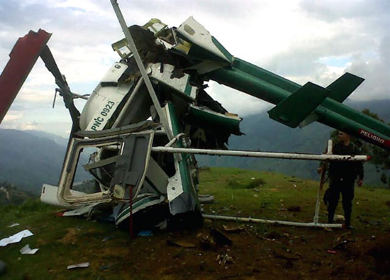 El secretario de gobierno de Antioquia, Santiago Londoño, explicó a periodistas que el helicóptero accidentado, que pertenecía a la Dirección Antinarcóticos de la Policía, "recién había aterrizado y descargado a personal de la Policía en ese punto estratégico. Por fortuna no hay personas lesionadas".