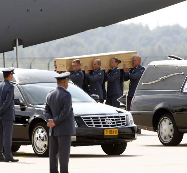 El último avión procedente de Jarkov (Ucrania) con restos humanos llegó hoy al aeropuerto de Eindhoven, donde una ceremonia cerró una semana negra para Holanda, que ha perdido a al menos 193 compatriotas en el vuelo de Malaysia Airlines MH17.