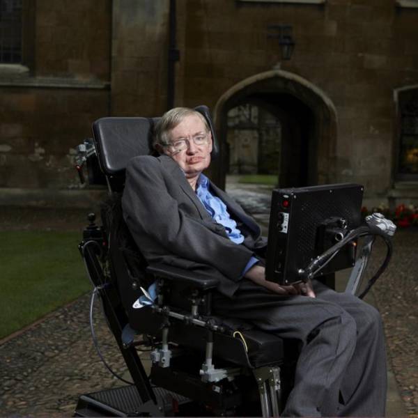 El video de su presentación, que se puede ver en YouTube, muestra la figura exacta del físico sentado en su característica silla electrónica hablando ante el público presente.