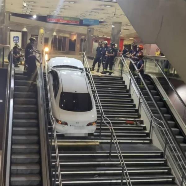 Hombre roba un auto y lo deja en las escaleras de una estación subterránea de Madrid