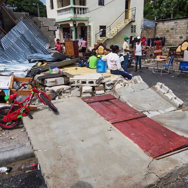 Familias permanecen junto a su viviendas destruidas en Hato Mayor, República Dominicana. Foto: EFE