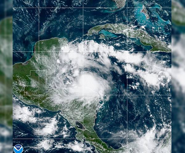 Imagen satelital el miércoles 2 de septiembre de 2020 muestra a la tormenta tropical Nana acercándose a Belice. Foto: AP