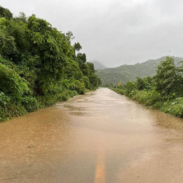 Vía inundada como parte de los daños ocasionados por el Huracán Otis ( )