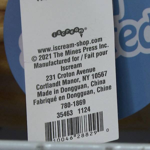 La etiqueta de un juguete fabricado en China se ve en la tienda Child's Play Toys en Washington, D.C., el 18 de abril de 2025( )