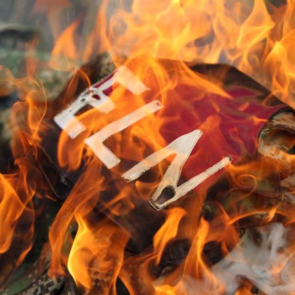 Imagen de archivo de pertenencias del ELN siendo quemadas. Foto: EFE.