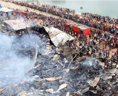 Un gigantesco incendio consumió 500 casas de barriada chabolista de Padma Garments en la zona de Begunbari en Dacca, capital de Bangladesh.