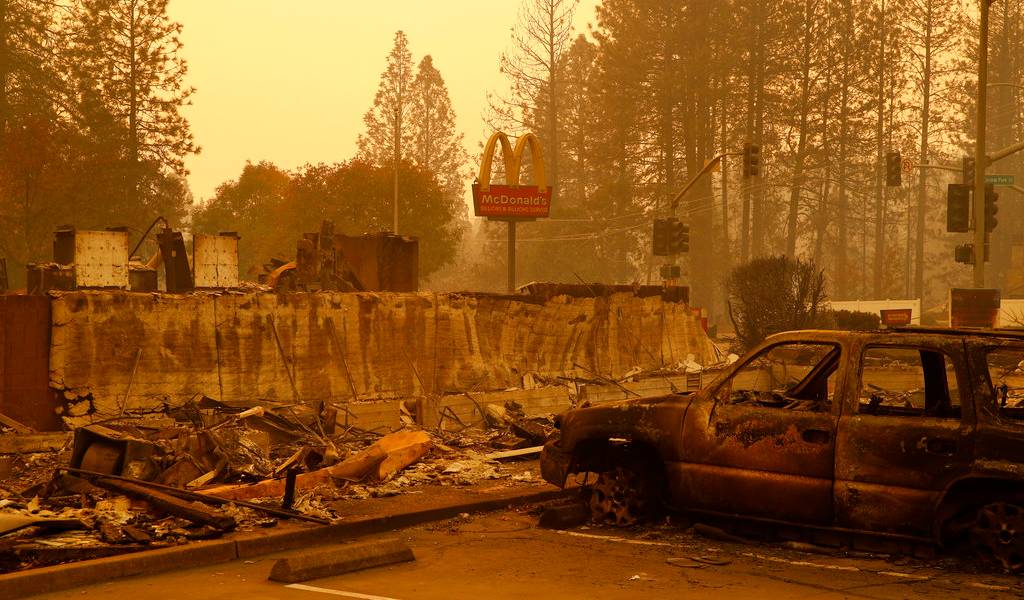 Local de McDonald's fue destruido por un incendio forestal en el poblado de Paradise, en el norte de California. Foto: AP