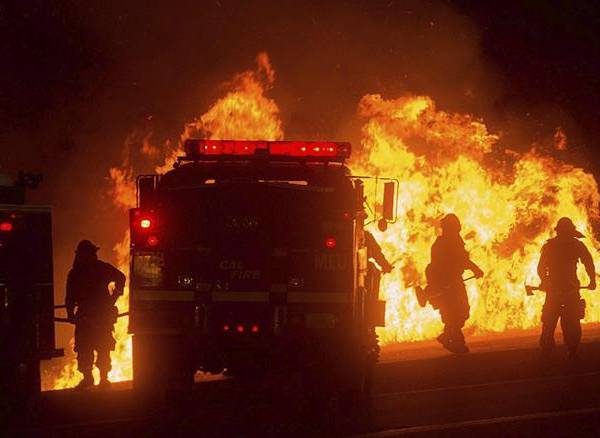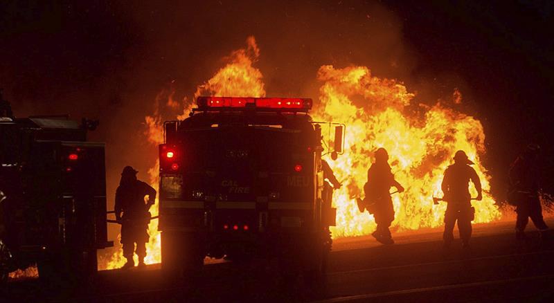 Alrededor de 9.600 bomberos de todo el estado se desplazaron hacia los puntos críticos para combatir los incendios a lo largo del fin de semana, según informó la oficina de Brown.