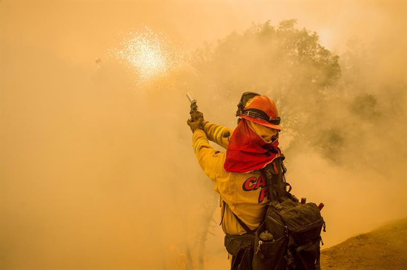 Un grave incendio en el noroeste de California (EEUU) causó un muerto y forzó la evacuación de unas 12.000 personas este fin de semana, mientras que más de 9.000 bomberos seguían combatiendo hoy dos decenas de fuegos en todo el estado, que atraviesa desde hace meses una notable sequía.