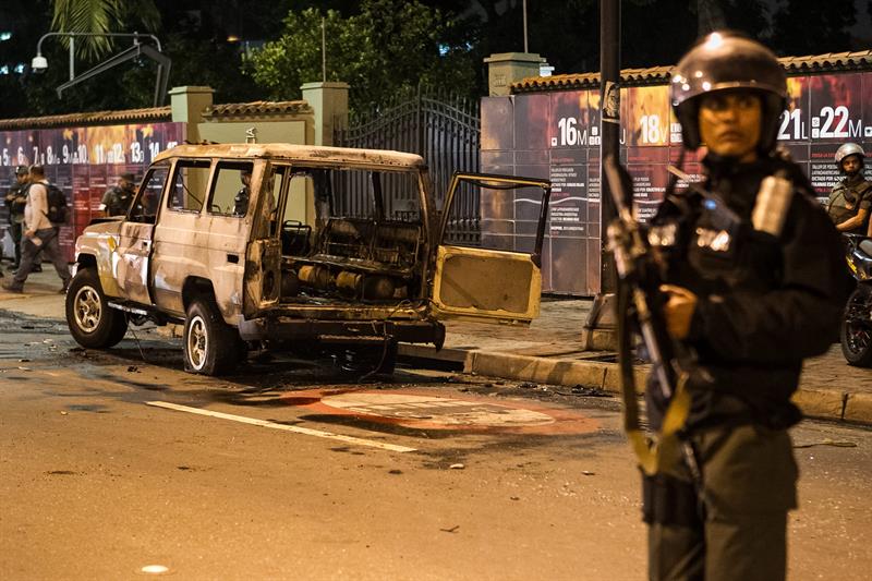 "En este momento incendian vehículo transporte de GNB (policía militarizada) en la Av. Francisco de Miranda, así como vehículos en Universidad Fermin Toro, Bqto.", indicó en su cuenta de Twitter el jefe del Comando Estratégico Operacional de la Fuerza Armada Nacional Bolivariana, general Vladimir Padrino.