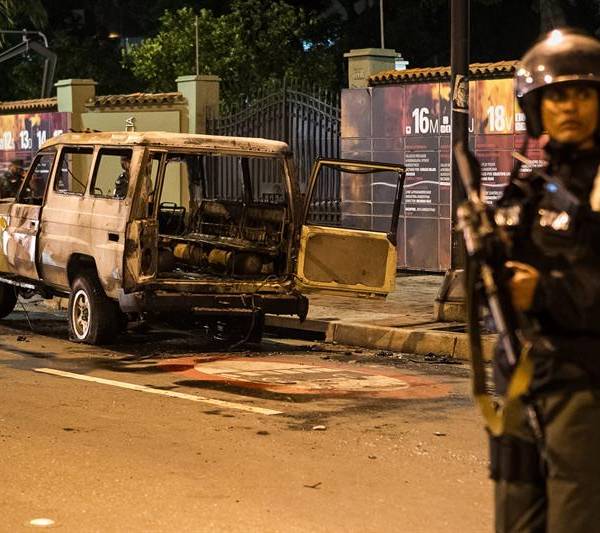 El alcalde del municipio capitalino de Chacao donde sucedió la quema del vehículo de la Guardia Nacional Bolivariana (GNB), Ramón Muchacho, sostuvo, también a través de Twitter, que los responsables de la quema de esta camioneta fueron un "grupo de encapuchados".