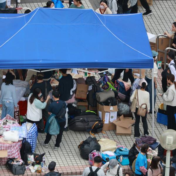 Voluntarios reparten ayuda entre los afectados por el incendio de un edificio en Hong Kong, que ha dejado más de un centenar de muertos.( )