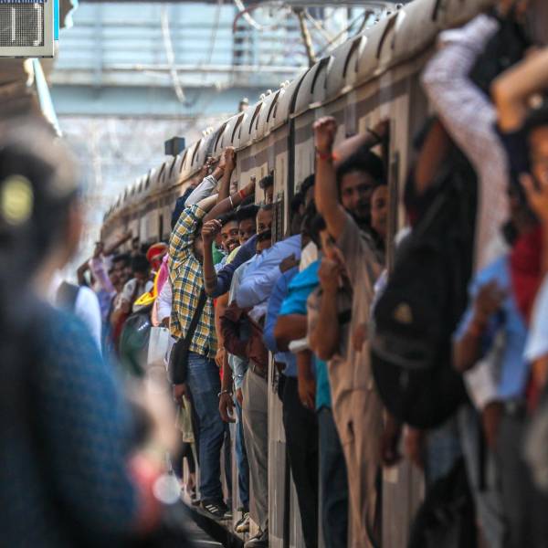 Personas viajan en tren desde la estación de Boriwali en Bombay, India, el 20 de abril de 2023. ( )