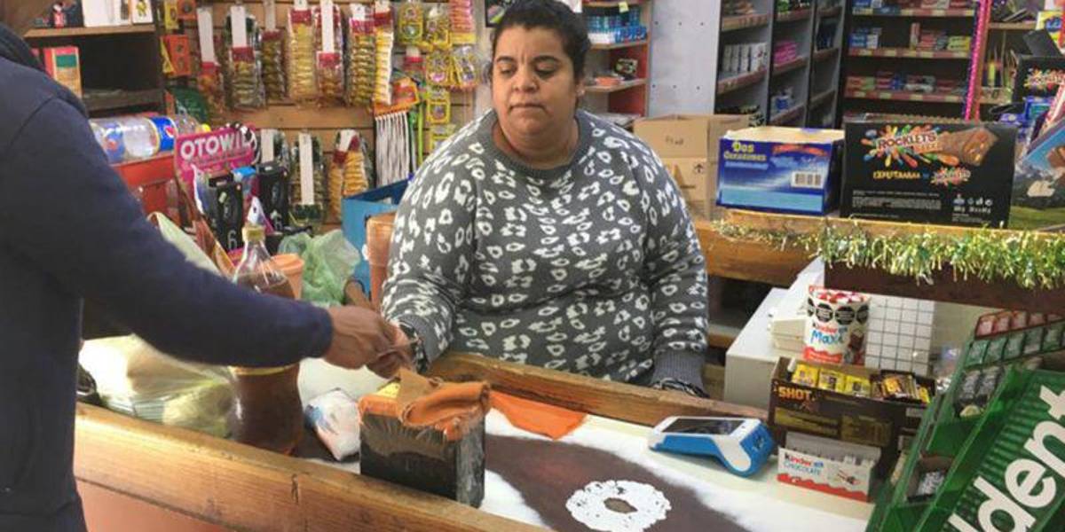 Cinthia, de 37 años, quien entró a la tienda de Yanina para comprar unas galletas para su ahijado, le cuenta a BBC Mundo que tiene un trabajo estable como administrativa en un hospital maternoinfantil.