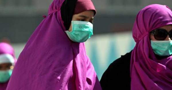 IRÁN.- Dos mujeres en La Meca se protegen del coronavirus del MERS con mascarillas. Foto: Internet