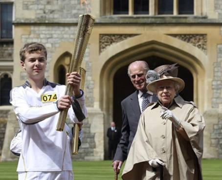 La reina Isabel II y su esposo, el duque de Edimburgo, dieron hoy la bienvenida a la antorcha olímpica en el castillo de Windsor, en el condado inglés de Berkshire, cuando quedan 17 días para que se inauguren los Juegos de Londres.