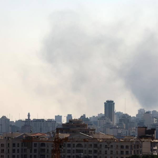 El humo se eleva después de un ataque aéreo israelí en el centro de Teherán, Irán.( )