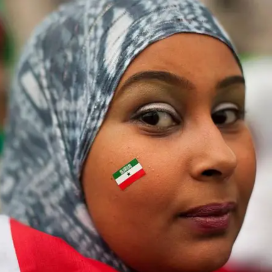 Una mujer con la bandera de Somalilandia en su rostro.( )
