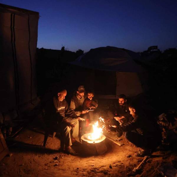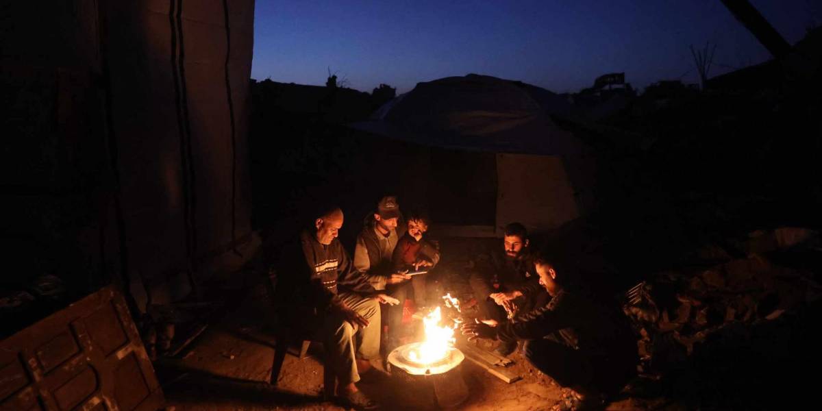 Palestinos se reúnen en torno a una hoguera para calentarse en Jabalia, en el norte de la Franja de Gaza, el 10 de marzo de 2025, durante el ayuno sagrado musulmán del Ramadán.( )