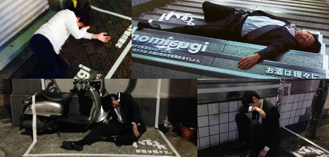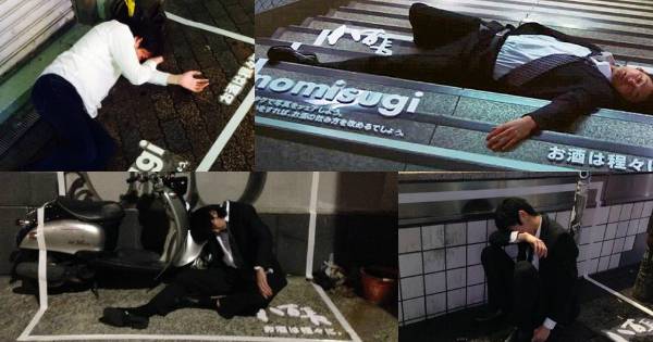 Los borrachos que duermen en las calles de Japón se han convertido en 'vallas publicitarias humanas' para una campaña contra el consumo excesivo de alcohol puesta en marcha por una popular cadena local de bares, según publica el portal de RT.