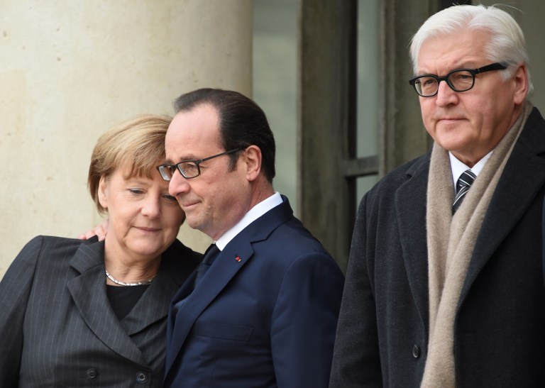 - Del lado europeo, el presidente francés François Hollande, la canciller alemana Angela Merkel, el primer ministro británico David Cameron, el presidente del gobierno español Mariano Rajoy, el presidente del consejo italiano Matteo Renzi, el presidente de la Comisión Europea Jean-Claude Juncker, el presidente del Parlamento europeo Martin Schulz y el presidente del Consejo Europeo Donald Tusk.