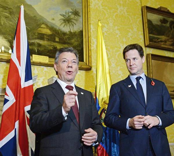 Santos aprovechó la reunión con Clegg para subrayar que las relaciones diplomáticas entre Colombia y el Reino Unido pasan por un momento especialmente positivo, y subrayó que la experiencia británica en "otros procesos" de paz ha resultado útil para Colombia.