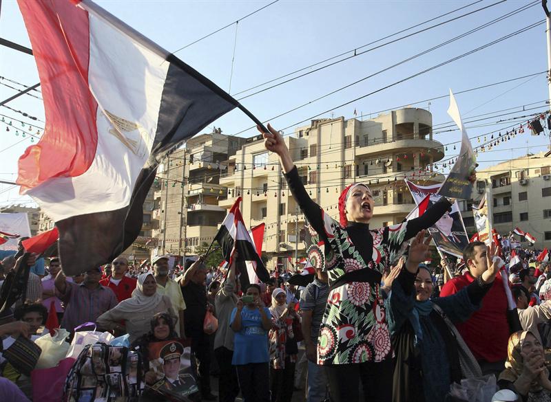 La céntrica plaza de la capital y los alrededores del Palacio Presidencial de Itihadiya se convirtieron en un mar de banderas egipcias y de fotografías de Al Sisi, considerado casi como un héroe popular.