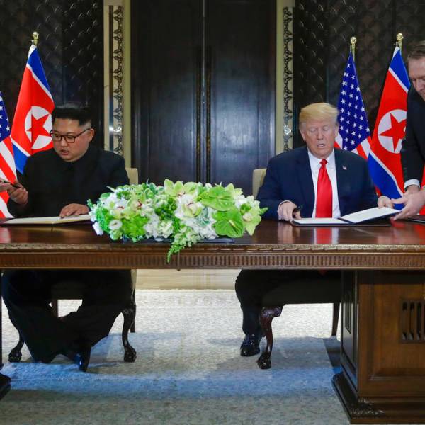 La firma del documento siguió a una serie reuniones en un lujoso complejo turístico de Singapur. Trump dijo entonces que esperaba "reunirse muchas veces” con Kim en el futuro. Respondiendo a preguntas de periodistas, dijo que “sin duda” invitaría a Kim a la Casa Blanca. Por su parte, Kim dijo que se trató de un "encuentro histórico” y dijo que "decidieron dejar el pasado atrás”.