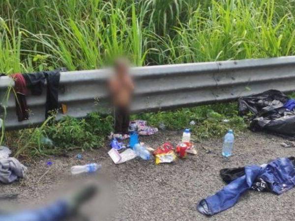 "Con el dorso desnudo, fue abandonado en el acotamiento, entre la barrera metálica, ropa suelta, mochilas y comida tirada. Ninguno de los adultos declaró ser familiar del menor", según el INM.