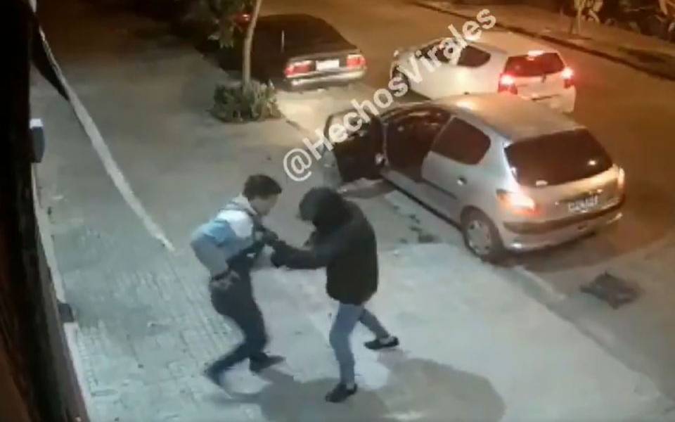 En Montevideo, Uruguay, un delincuente se baja de un automóvil blanco para intentar robar a una persona que se encontraba dentro de un coche estacionado en las calles. Según el portal laopinion.com, en las imágenes de un video se ve cómo un sujeto armado intimida a una persona que dialogaba con otra persona dentro del vehículo y le pide que se retire mientras ordena a la otra persona que se baje del vehículo para asaltarlo. La persona que se baja del carro sigue las indicaciones del ladrón. Al momento de ser esculcado, la persona, que resultó ser policía, aprovecha un instante de descuido del ladrón, saca de inmediato su pistola y comienza a dispararle al delincuente.