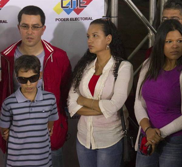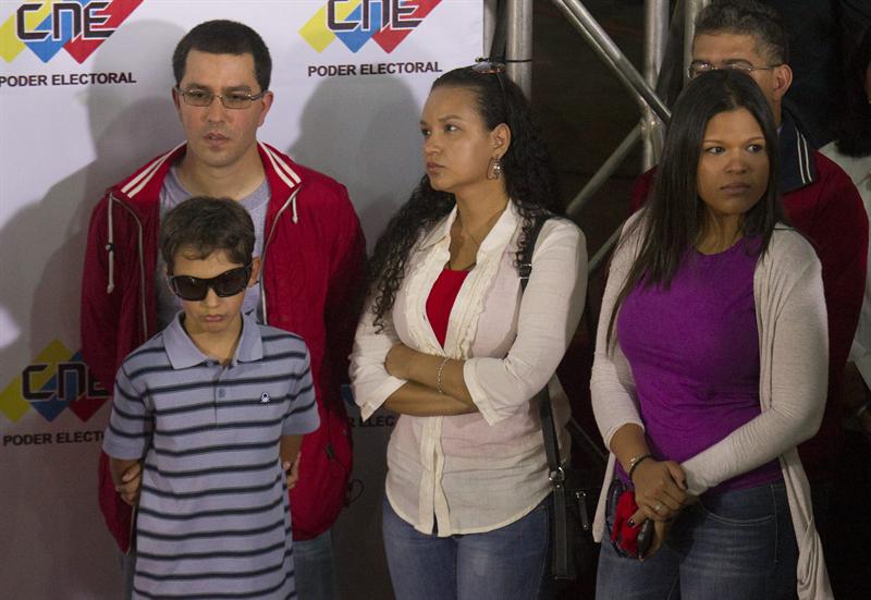 Rosa Virginia y María Gabriela, hijas del fallecido presidente Hugo Chávez, y su yerno y vicepresidente, Jorge Arreaza, votaron hoy en el mismo colegio del oeste de Caracas donde solía sufragar el ex gobernante venezolano.