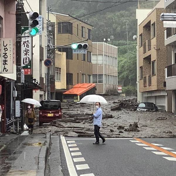 En imágenes filmadas por ciudadanos y distribuidas por las redes sociales se pudo ver cómo un gigantesco alud de barro se llevó por delante edificios enteros, automóviles y parte del tendido eléctrico y de la calzada de la mencionada ciudad, un popular destino turístico por sus "onsen" o baños termales japoneses.