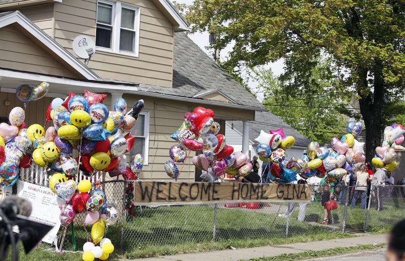 Amanda Berry, de 27 años y que en sus diez años de cautiverio tuvo una hija, se refugió hoy en la casa de su hermana, repleta de globos y ositos de peluche que los vecinos han ido depositando para celebrar su regreso.