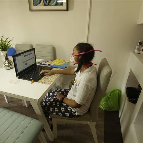 Una niña recibe una clase virtual a través de un computador portátil. EFE/Carlos Lemos