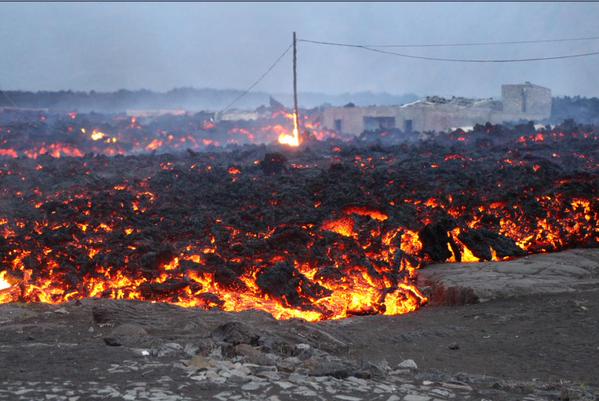Según el comandante Lima, el río de lava ha avanzado mucho desde el domingo, "su frente, (que se encontraba) a más de 500 metros al norte de las últimas casas de Bangaeira hace una semana, alcanzó a una buena parte del poblado y sigue su progresión".