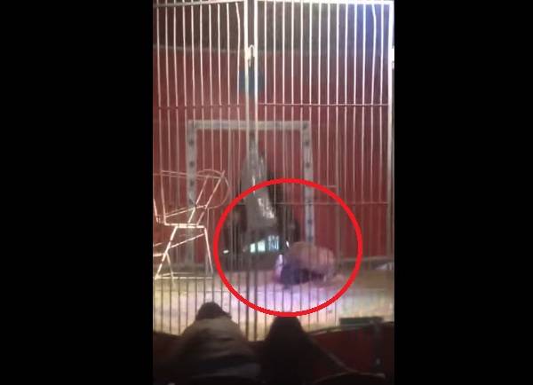 El video fue publicado por una asociación de protección de animales que denuncia los abusos que sufren las especies en los circos. En el video pueden escucharse los gritos de los presentes que corren aterrados al ver el inesperado y sangriento espectáculos. Incluso, se ve cómo muchos padres toman a sus niños en brazos para que no observen la violenta escena.
