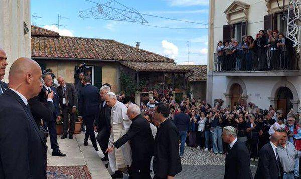 El canal de televisión italiano TV2000 mostró imágenes del pontífice saliendo de un vehículo negro y entrando a la basílica y la cadena italiana RAI ha mostrado una imagen de León XIV de blanco a su llegada a ese municipio, donde ha sido recibido por el obispo de la diócesis y autoridades locales.