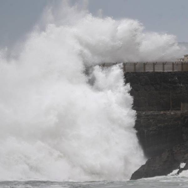 En la imagen de archivo, una ola rompe en la península de la Magdalena, en Santander (norte de España). ( )