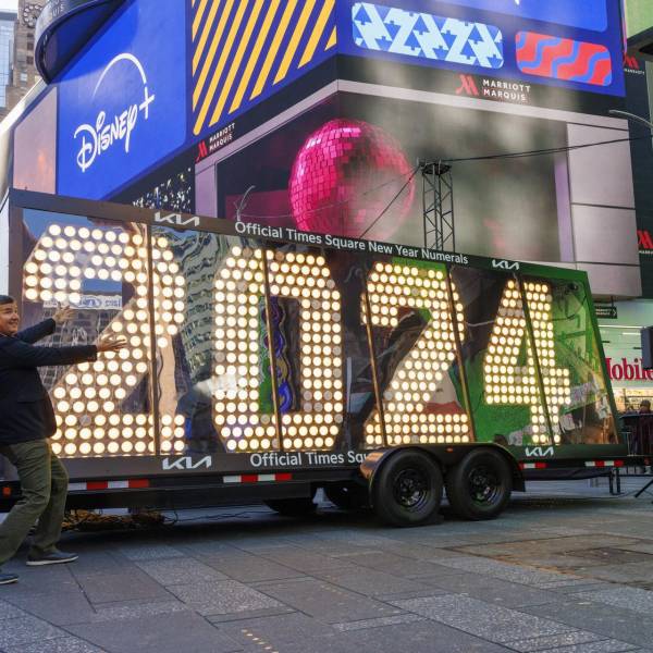 Los números de 2024 que darán la bienvenida al año nuevo ya pueden verse en Times Square.