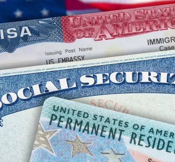 Imagen del carnet de residencia de EE.UU., la tarjeta de seguridad social y una imagen referente a un visado de inmigrante.( )