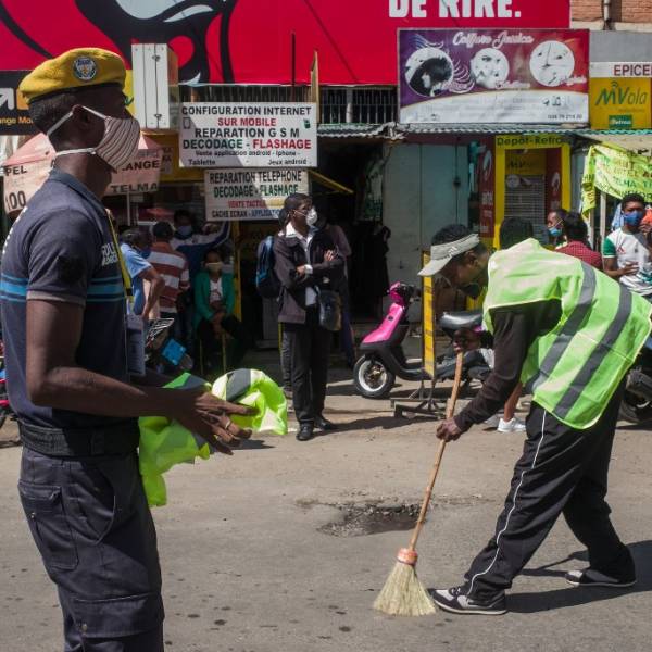 La policía de Madagascar comenzó el lunes a sancionar a las personas que salgan a la calle sin mascarillas de protección contra el coronavirus en las tres principales ciudades del país, obligándolas a barrer las aceras, anunciaron las autoridades.