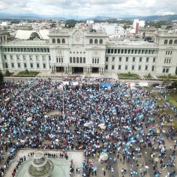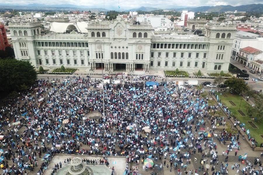 Al menos 10.000 personas se plantaron en el Centro Histórico de la capital del país, ante la sede del Gobierno, donde expusieron su insatisfacción tras 10 meses de la Administración de Giammattei.