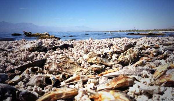 Tras décadas de recibir los vertidos de las numerosas explotaciones agrícolas de los vecinos valles de Coachella e Imperial, el agua del lago –que a mediados del siglo XX fue apodado como la "Riviera de California"– se ha transformado en un caldo fétido con una elevada salinidad.