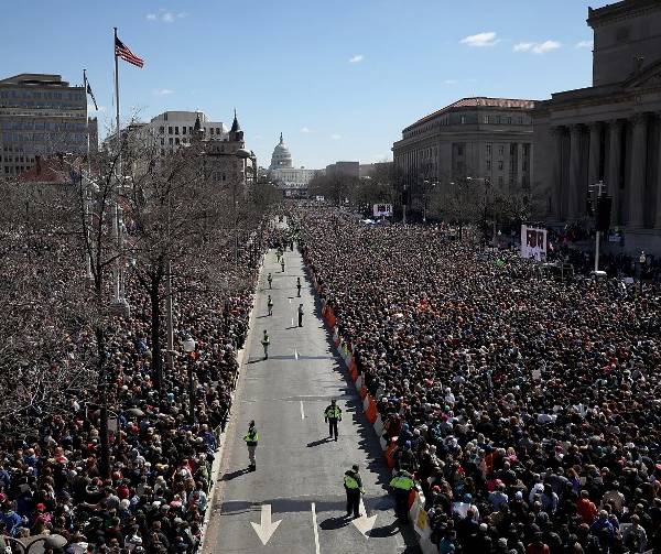 Mientras el centro de la capital estadounidense era literalmente inundado por jóvenes, niños y adultos, lo mismo ocurría en casi aproximadamente un centenar de ciudades en todo el país.