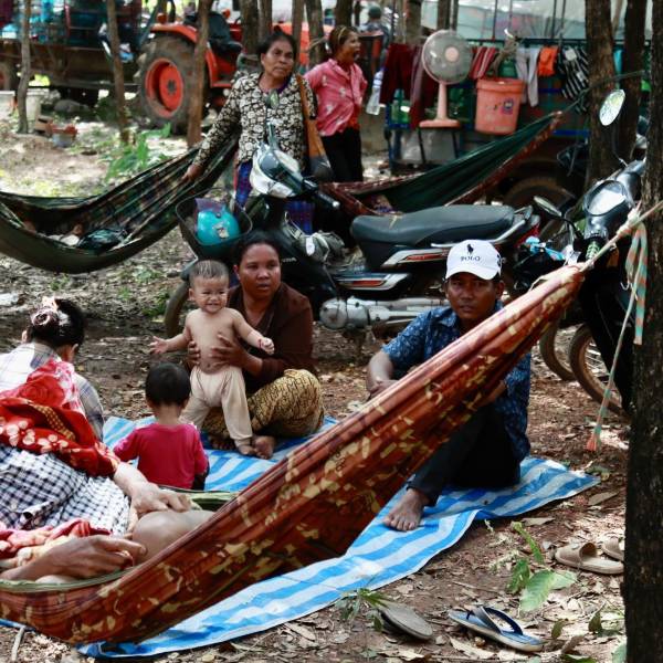 Personas huyen de sus hogares cerca de la frontera entre Camboya y Tailandia.( )