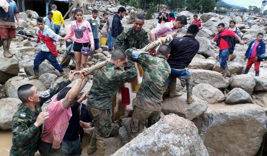 Más de 200 muertos y centenares de heridos y desaparecidos dejaba este 1 de abril de 2017 una masiva avalancha en el sur de Colombia, tras las fuertes lluvias que afectan a la región andina, en especial a Perú y Ecuador. "El último reporte son 206 personas fallecidas, 202 heridos, 220 desaparecidos, 300 familias afectadas, 17 barrios con mayor afectaciones y 25 viviendas totalmente destruidas", dijo a AFP César Urueña, director de Socorro de la Cruz Roja Colombiana (CRC), sobre la tragedia ocurrida la noche del viernes en el selvático municipio de Mocoa. "Nuestros corazones están con las familias de víctimas y afectados por esta tragedia. No vamos a desfallecer en su atención", tuiteó el presidente Juan Manuel Santos, que lidera en la zona las labores de rescate tras la avalancha generada por el desbordamiento de los ríos Mocoa, Mulato y Sangoyaco, en Putumayo, en plena Amazonía. Revise: Conmoción en Colombia por devastadora avalancha que deja un centenar de fallecidos Calles cubiertas de lodo, soldados cargando niños entre escombros, piedras y ramas, gente llorando en medio de casas y vehículos destrozados: las imágenes son impactantes. Mocoa, de unos 40.000 habitantes, seguía sin energía eléctrica y sin agua corriente, servicios que el gobierno intentaba restablecer. Carrotanques, tanques y plantas potabilizadoras ya fueron enviadas a la zona. "Hay mucha gente en las calles, mucha gente damnificada, muchas casas caídas", dijo a la AFP vía telefónica Hernando Rodríguez, un pensionado de 69 años. "Apenas nos estamos dando cuenta de lo que nos pasó", añadió. "En peligro de muerte" En la noche del viernes llovió 130 mililitros, el 30% de lo que cae en un mes en Mocoa, según explicó Santos. "Eso precipitó una creciente súbita de varios ríos (...) y eso produjo una avalancha", afirmó, antes de declarar la "calamidad pública" para "agilizar" las operaciones de rescate y ayuda. "Estamos en peligro de muerte, el agua ya llega a la mitad de la casa", contó con voz entrecortada una mujer identificada como Laura Montoya, que llamó a la línea de urgencias, según publicó la Presidencia en su sitio web. El meteorólogo Diego Suárez, del Instituto de Hidrología, Meteorología y Estudios Ambientales de Colombia (Ideam), señaló en Caracol Radio que la entidad prevé "precipitaciones menos intensas" para este sábado en Mocoa, mientras que para el domingo y lunes "paulatinamente irán descendiendo". Según el bombero David Silva, los establecimientos comerciales están cerrados "por temor" a asaltos. "Anoche hubo saqueos en sitios donde venden agua", dijo a AFP el bombero, de 22 años, quien indicó que la "mayoría" de los barrios afectados son habitados por desplazados por el conflicto armado de medio siglo. Además: Ecuador y otros países se solidarizan con Colombia tras mortal avalancha La ola invernal en Sudamérica no solo ha golpeado a Colombia. Perú viene soportando desde principios de año lluvias y avalanchas que hasta el momento dejan 101 muertos y más de un millón de damnificados. En Ecuador, en tanto, se han registrado 21 muertes desde enero, 9.409 familias damnificadas y 1.280 damnificados, según el más reciente balance oficial. "Emergencia sanitaria" Brasil, España, Ecuador, Venezuela, Alemania y la Unión Europea, entre muchos países y organismos internacionales, expresaron su solidaridad tras la catástrofe, que supera al último gran desastre natural de Colombia, el de Salgar, a unos 100 kilómetros de Medellín, donde en mayo de 2015 murieron 92 personas por un deslave. La gobernadora de Putumayo, Sorrel Aroca, dijo a Caracol Radio que se declaró la "emergencia sanitaria" ante el colapso del hospital del municipio, por lo que se tuvieron que habilitar otros lugares para recibir a los heridos. Las aguas se llevaron por delante viviendas, postes de energía, vehículos, árboles y destruyeron al menos dos puentes, agregó el Ejército, cuyos soldados apoyan las labores de rescate y socorro. "La situación de Mocoa es dramática. Invocamos la solidaridad de toda Colombia", escribió en Twitter el viceministro del Interior, Guillermo Rivera. Una sala de crisis con autoridades locales, soldados, policías y miembros de organismos de socorro trabaja en la búsqueda de desaparecidos y en la remoción del material, informó el gobierno. Un millar de personas ayuda en las labores de rescate en la zona, donde se han movilizado más de siete toneladas de equipos y enviados miles de kits de aseo, ayudas alimentarias y colchones.