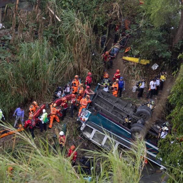 El número de pasajeros fallecidos en un accidente de un bus que cayó por un puente al norte de Ciudad de Guatemala en la madrugada de este lunes aumentó a más de 40. Los cuerpos de socorro continúan con las labores de rescate.